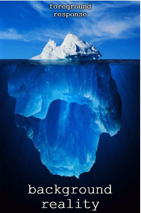 One of the most important skills in Stemless is wide listening. It’s different from regular listening, in that you listen not just to the purported foreground of what’s being said, but also the background. What is foregrounded in someone’s words, no matter how unambiguous the words, is only an impressionistic display of their reality, of the situation they’re responding to.